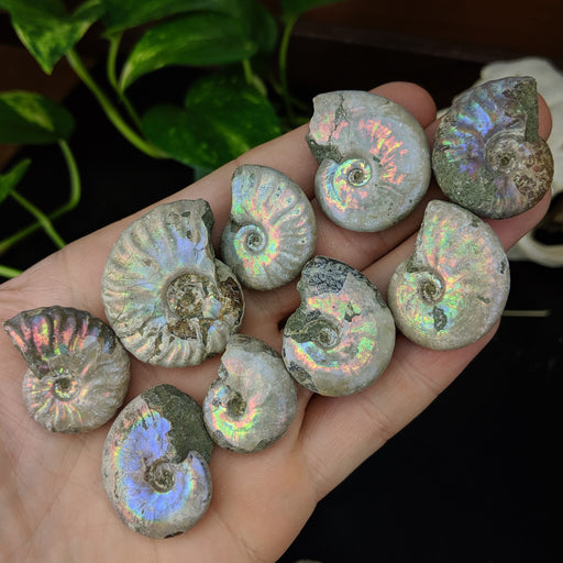 Our Pearlized Ammonites come direct from Madagascar where they are mined from hard rock deposits. All of the iridescent colors present in these anc...
