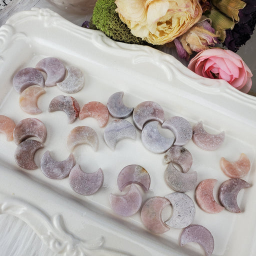 Our Pink Amethyst Moons ae hand-cut and polished from all natural Pink Amethyst. Their soft purple pastel gives these moons a romantic and feminine...