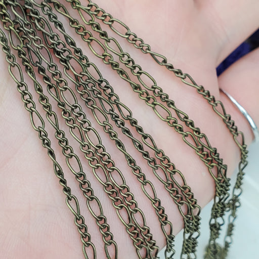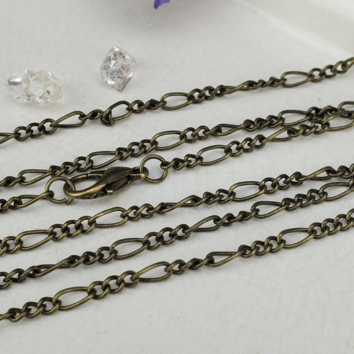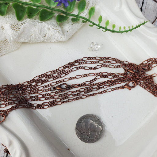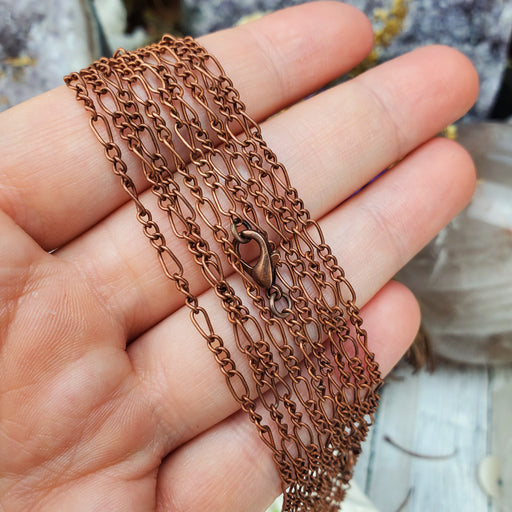 These dainty Figaro Chains come in 18" and 24", the links are 2.5mm. They are nickel free Copper plated Steel. Click here to see all Chain