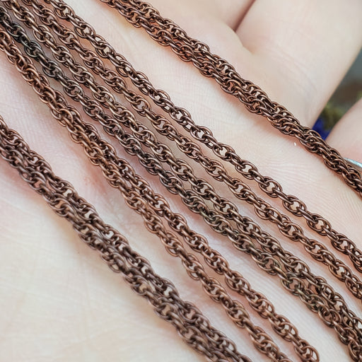 These Rope Chains come in 18" and 24", the links are 2mm. They are nickel free Copper plated Steel. Click here to see all Chain