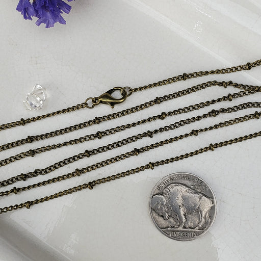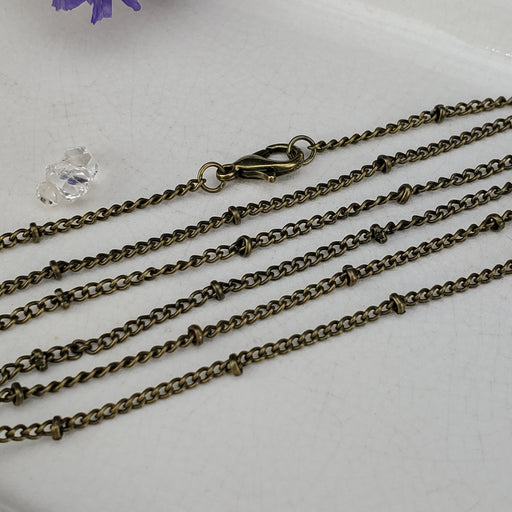 These Beaded Curb Chains come in 18" and 24", the links are 2mm. They are nickel free Brass plated Steel. Click here to see all Chain