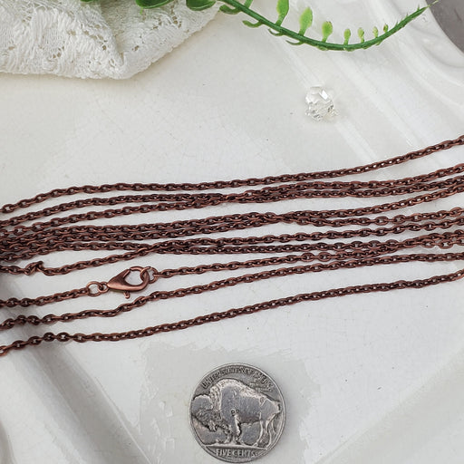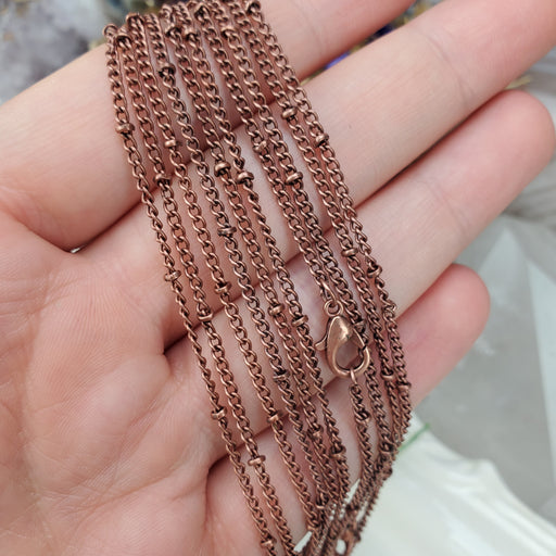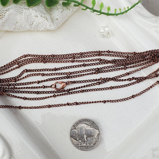 These Beaded Curb Chains come in 18" and 24", the links are 2mm. They are nickel free Copper plated Steel. Click here to see all Chain