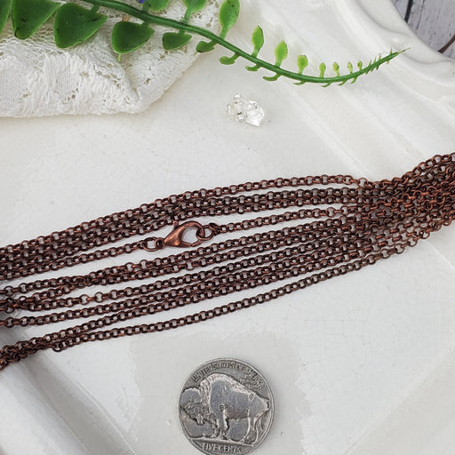These classic Cable Chains come in 18" and 24", with options of 2mm and 3mm links. They are nickel free Copper plated Steel. Click here to see all...