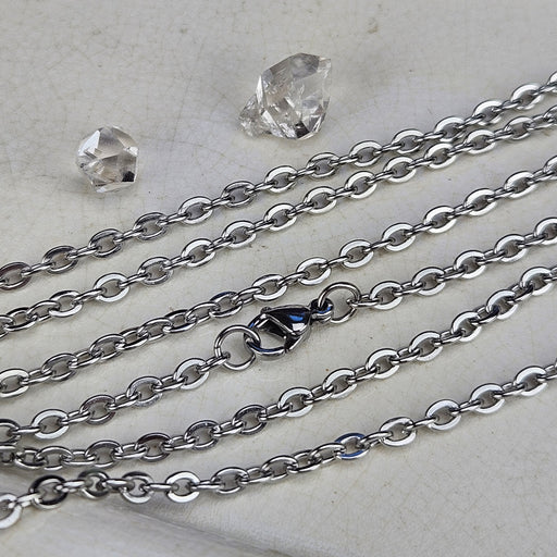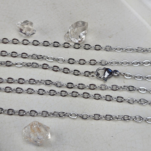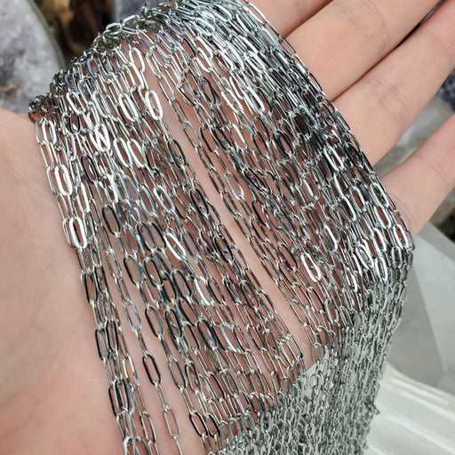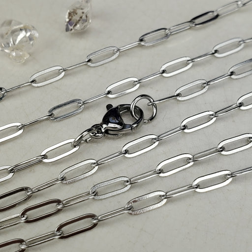 These Paperclip Chains come in 18" and 24", the links are 2.5mm. They are nickel free Stainless Steel. Click here to see all Chain