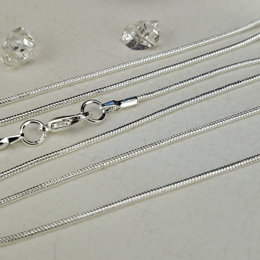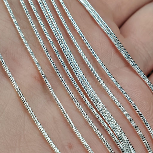 These Snake Chains come in 18" and 24", its 1.5mm. They are nickel free Silver plated Steel. Click here to see all Chain