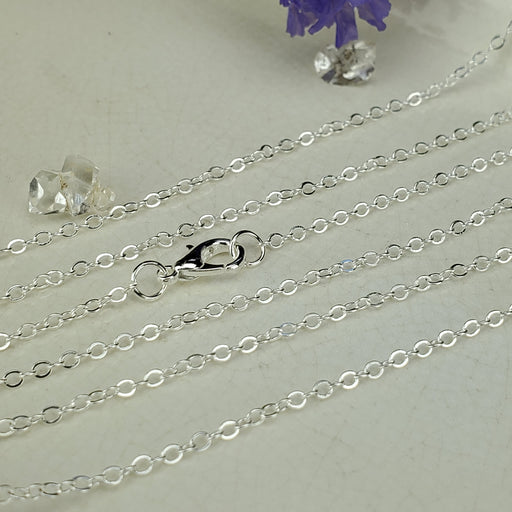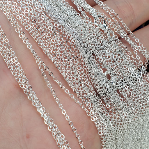 These dainty Cable Chains come in 18", the links are 1.5mm. They are nickel free Silver plated Steel. Click here to see all Chain
