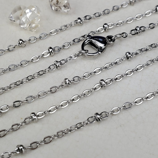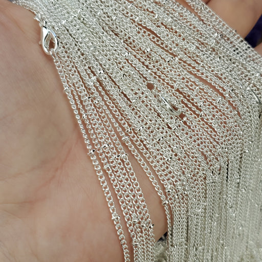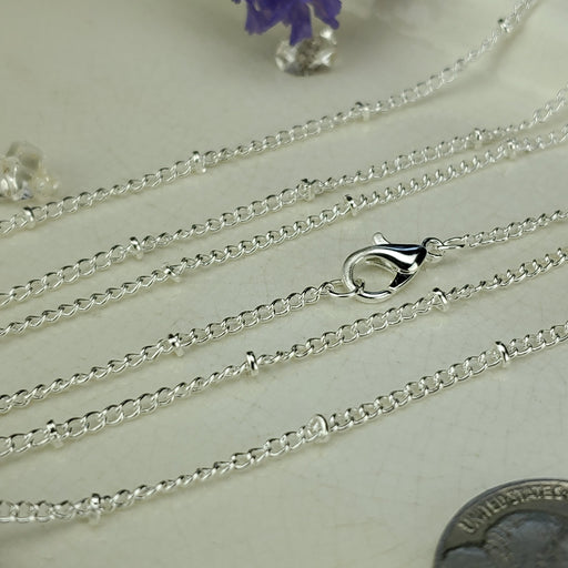 These Beaded Curb style Chains come in 18" and 24". The links are 2mm. They are nickel free Silver plated Steel. Click here to see all Chain