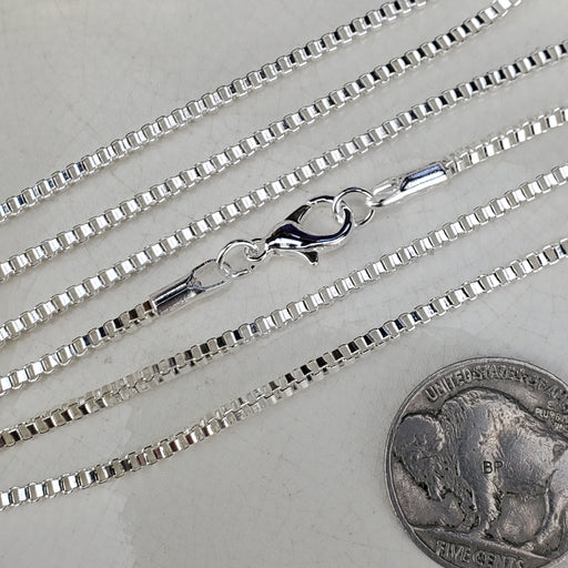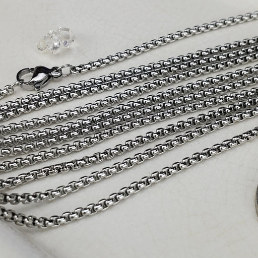 These Box Chains come in 18" and 24", the links are 2mm. They are nickel free Silver plated Steel. Click here to see all Chain