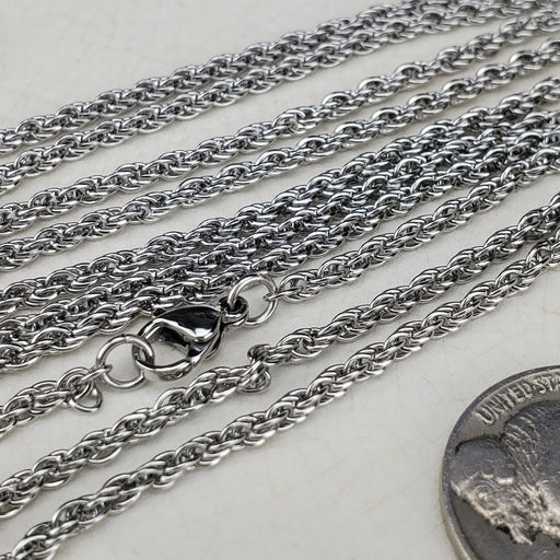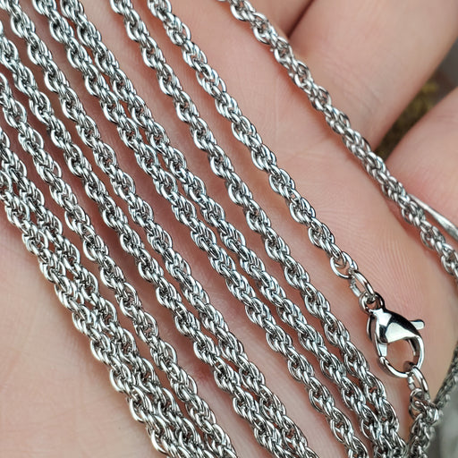These Rope style Chains come in 18" and 24", the links are 2.5mm. They are nickel free Stainless Steel. Click here to see all Chain