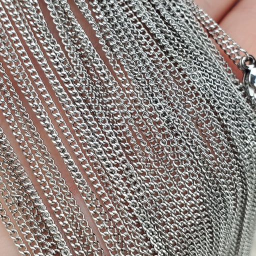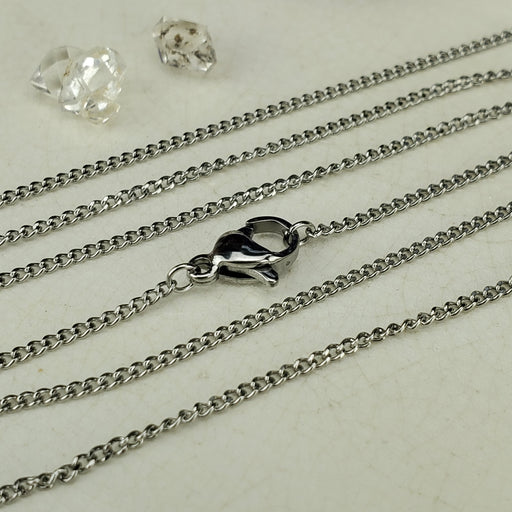 These dainty Flattened Curb style Chains come in 18" and 24", the links are 1.5mm. They are nickel free Stainless Steel. Click here to see all Chain