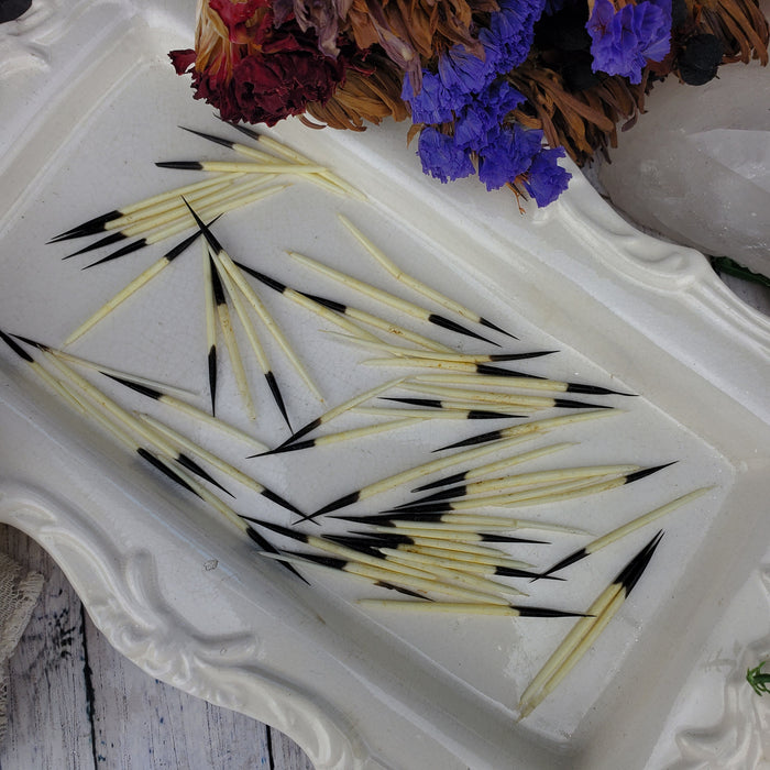 Our African Porcupine Quills are sold as randomly selected single pieces. They are approximately 1¼''-2" long. These were collected from naturally shed quills.