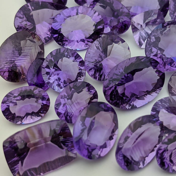 Our Amethyst Assorted Shape Facets are hand cut and polished from all natural Amethyst.
