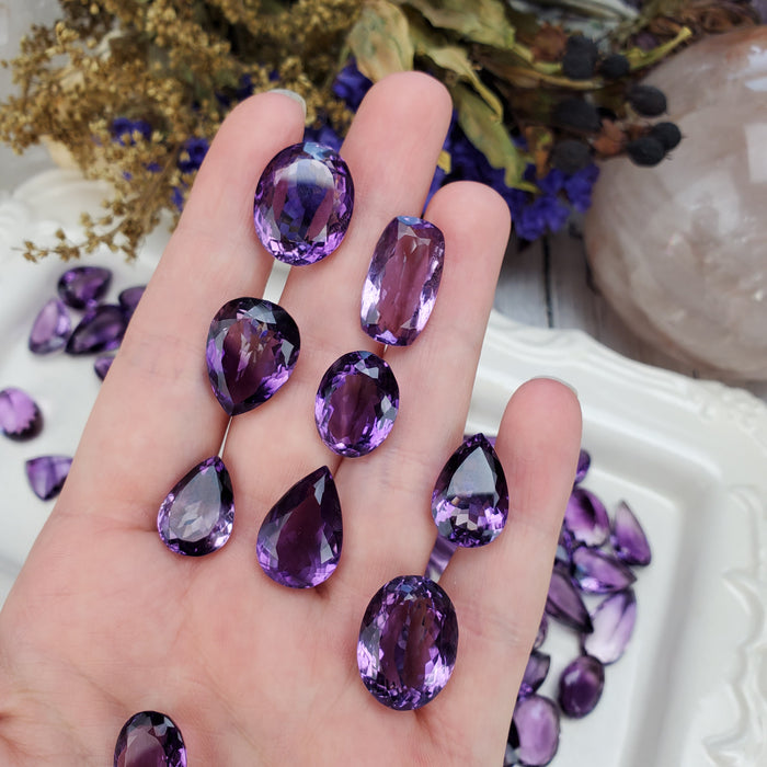 Our Amethyst Chunky Facets are sold as randomly selected single pieces. They range from approximately 13mm - 22mm.