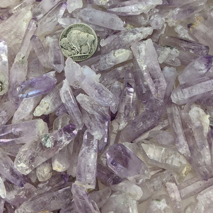 These Vera Cruz Amethyst Crystal points are sold as singles. They range from approximately ½-1½" measured from top to bottom and ⅛-⅜" thick.