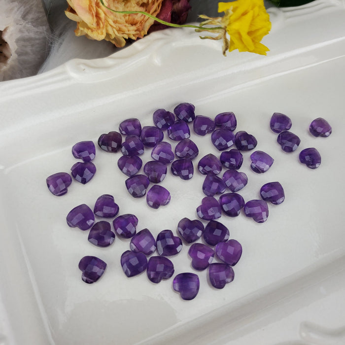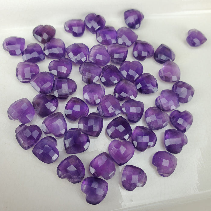 Amethyst Faceted Hearts, 10mm
