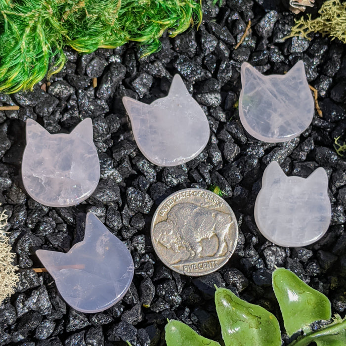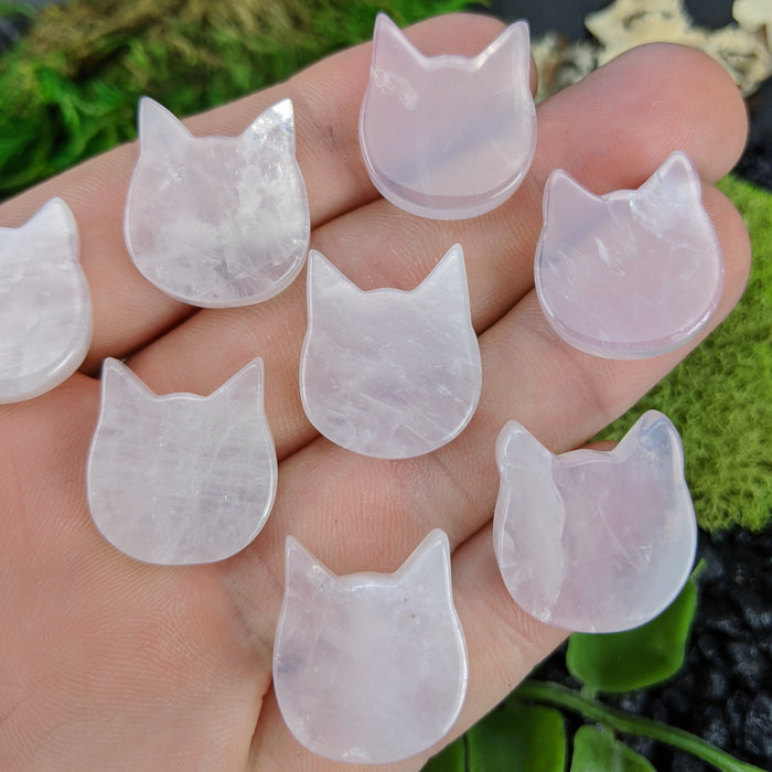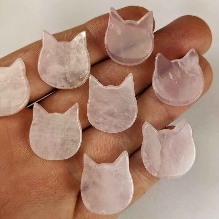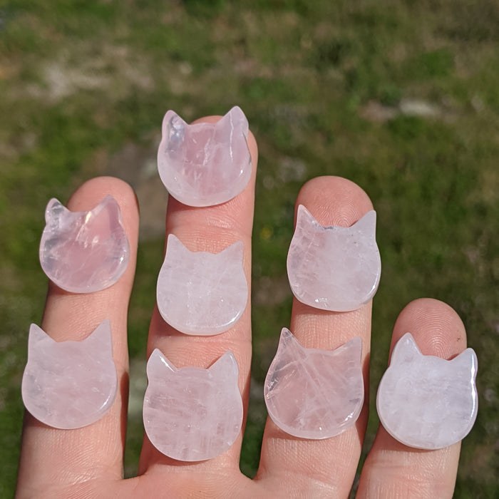 Our Mini Brazilian Rose Quartz Cat Heads are hand cut and polished from all natural Brazilian Rose Quartz.