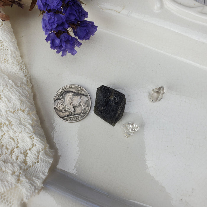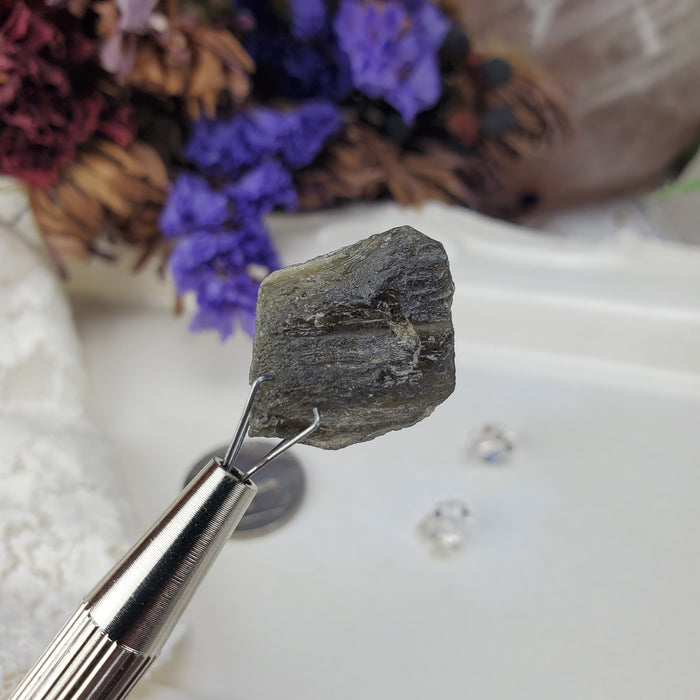 Photos are of 1 single piece shown from different angles and under different light. You will receive the exact piece of Moldavite shown. Measurements and weight ~ 17x17mm, 2.91 grams. Minor chips may be present.
