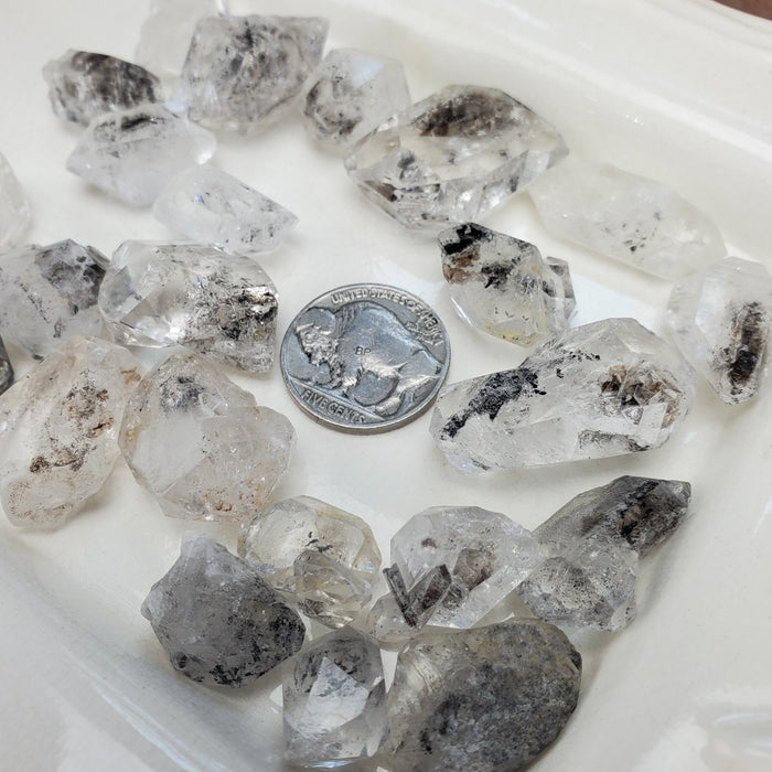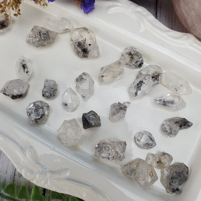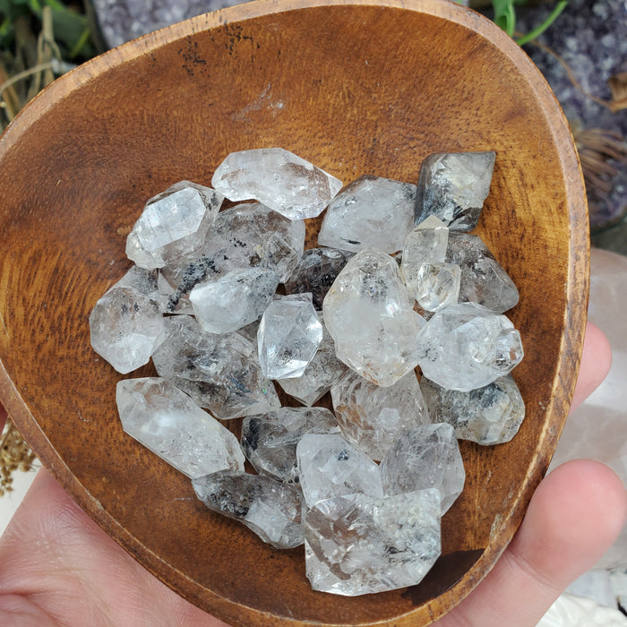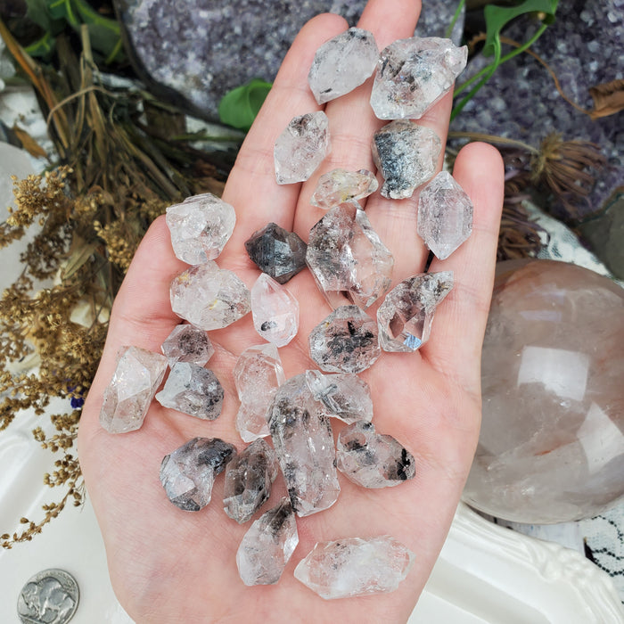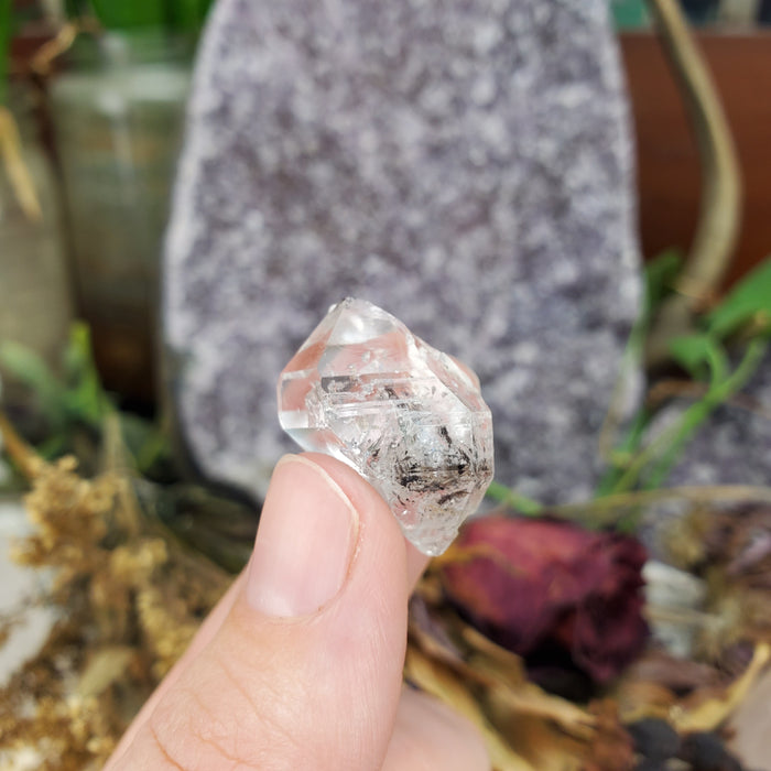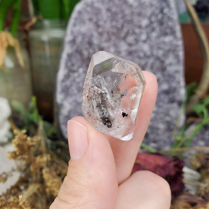 These exquisite and unique Tibetan Double Terminated Quartz come from the remote Himalayan Mountains. They carry bits of magic within their clear prisms; dotted with black inclusions, wonder and mystery. Similar to Herkimers and Pakimers, these are naturally formed double terminated points.