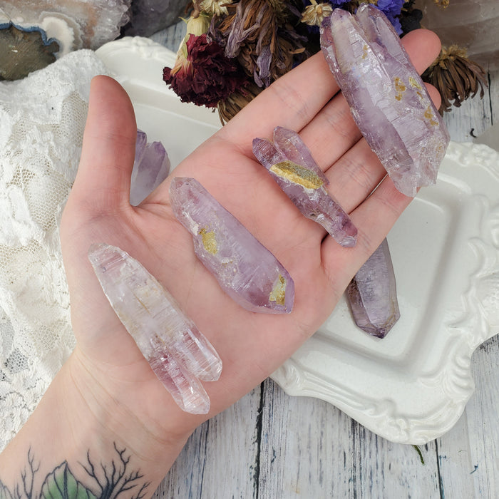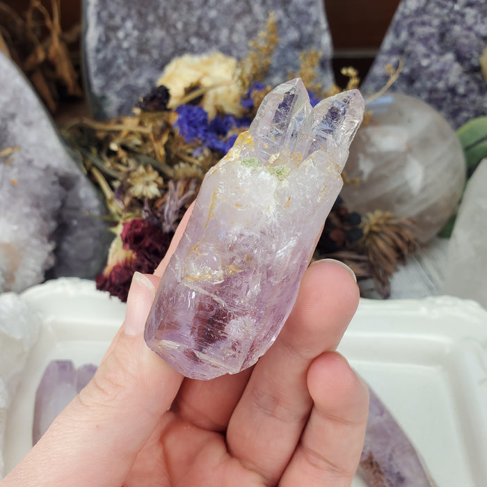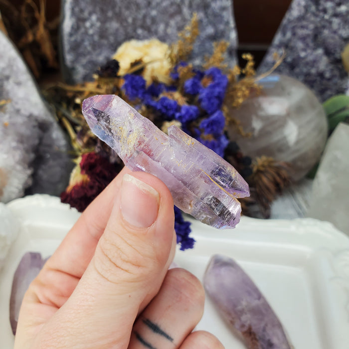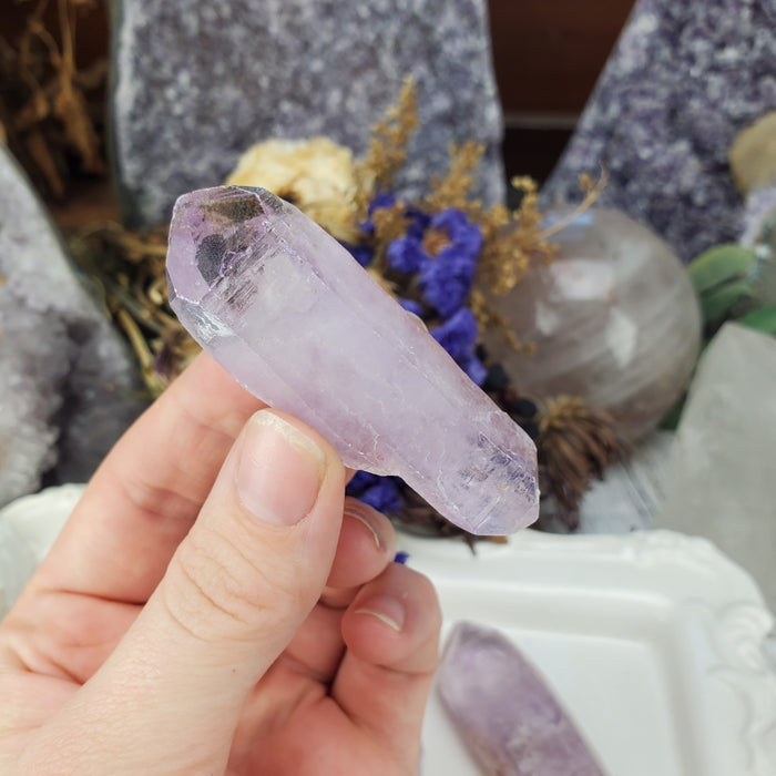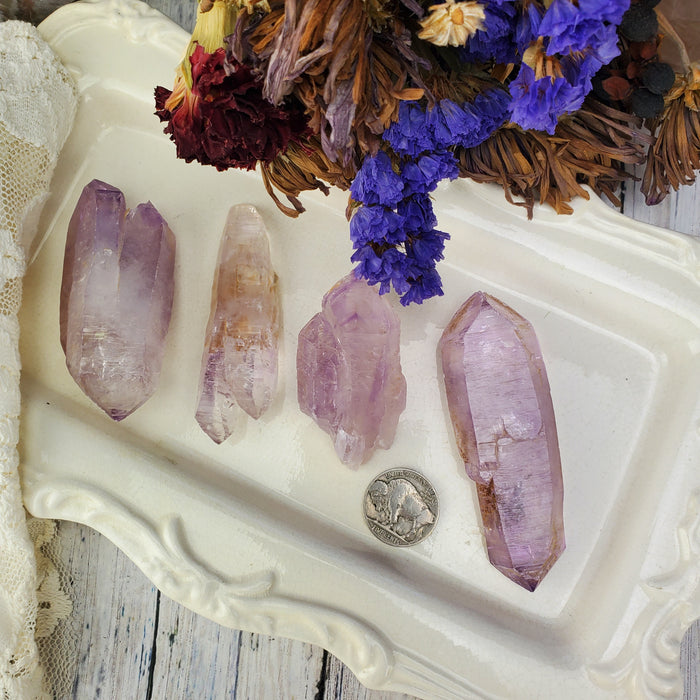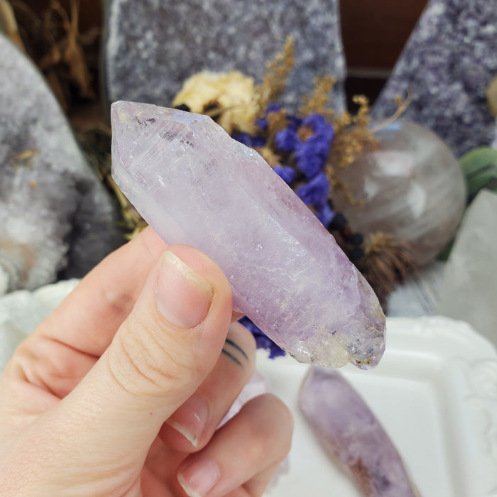 Our Vera Cruz Amethyst Points are sold as randomly selected single pieces. They range from approximately 2 1/4" - 3 1/2" long. These are natural, unpolished, crystals.