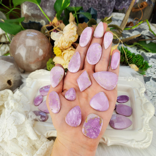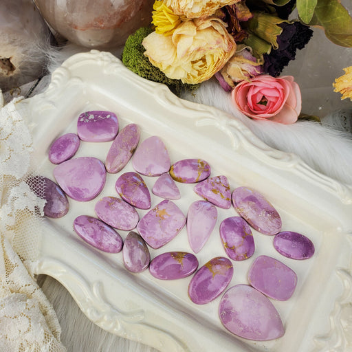 Soft florals, orchids, and mauve- these Phosphosiderite Cabochons are divinely feminine. Their gentle purple hues are pleasant with eye catching ve...