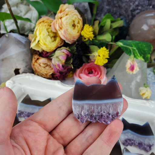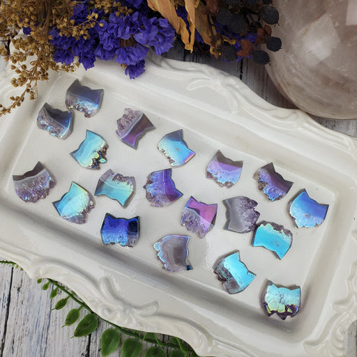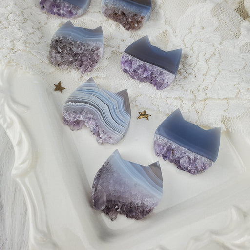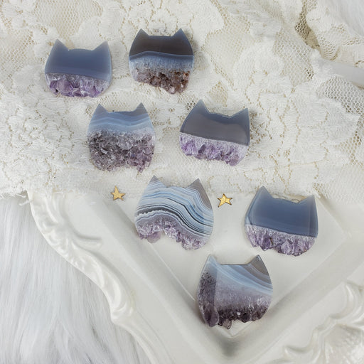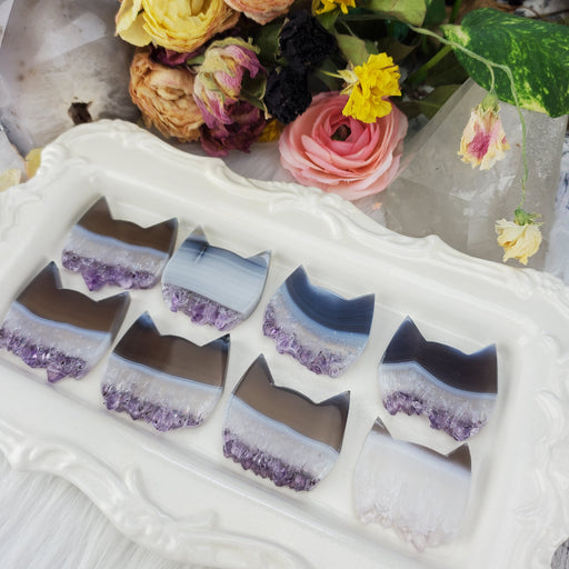View full detailsAmethyst, Quartz, and Agate Aura Cat Heads, Medium