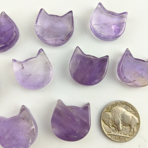 Our Amethyst Cat Heads are hand cut and polished from all natural Brazilian Amethyst. There is even some Ametrine in some (natural Amethyst and Cit...