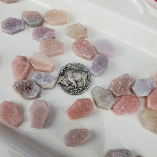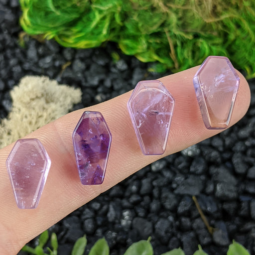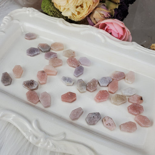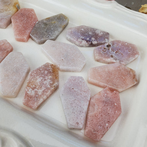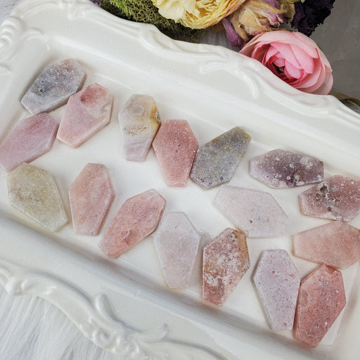 Our Pink Amethyst Coffins give a soft, pastel touch to all things doom and gloom! Hand-cut and polished from all natural Pink Amethyst, these coffi...