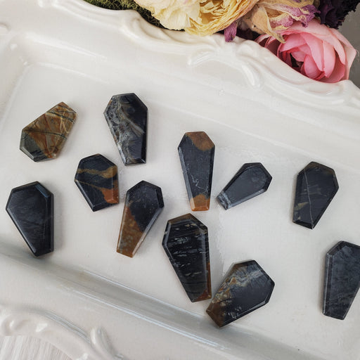 Our Picasso Jasper Coffins are hand cut and polished from all natural Picasso Jasper. These Picasso Jasper Coffins are sold as randomly selected si...