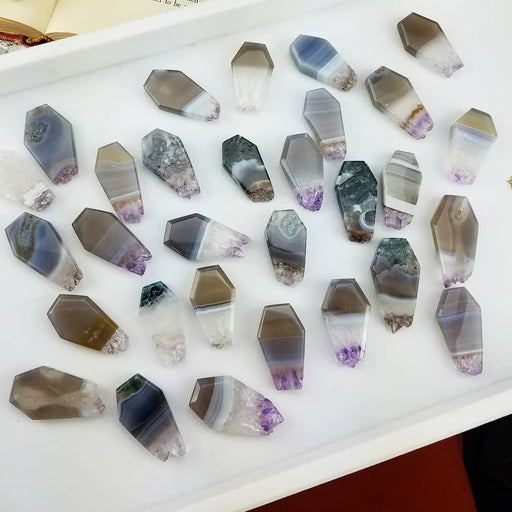 View full detailsMoss Agate and Quartz Doublet Coffins
