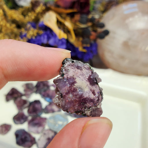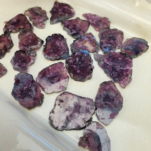 These deep purple slices of Tourmaline are full of glittering Lepidolite inclusion. Our Tourmaline with Lepidolite Slices are sold as randomly sele...