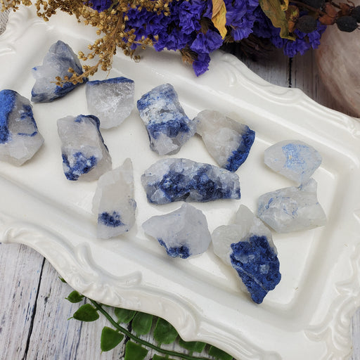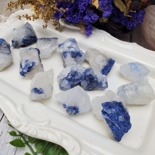 Our Dumortierite in Quartz Rough Chunks comes from Brazil, their bright blue Dumortierite a beautiful contrast against milky quartz. These Dumorti...