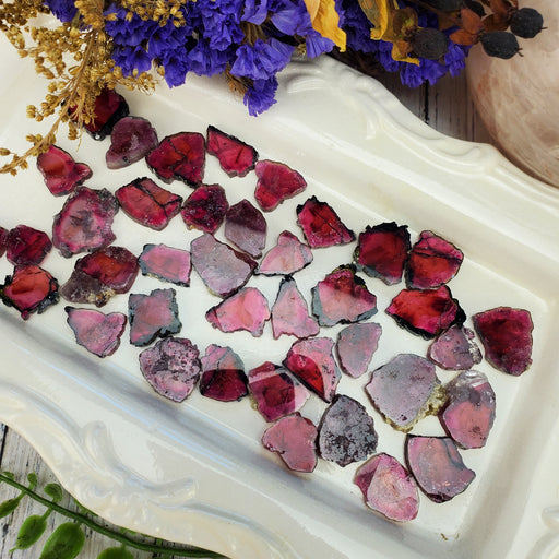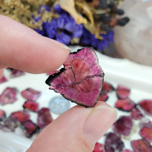 These Dark Pink Tourmaline Slices have the most romantic coloring, many pieces also displaying excellent clarity. Our Dark Pink Tourmaline Slices ...