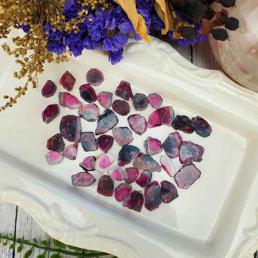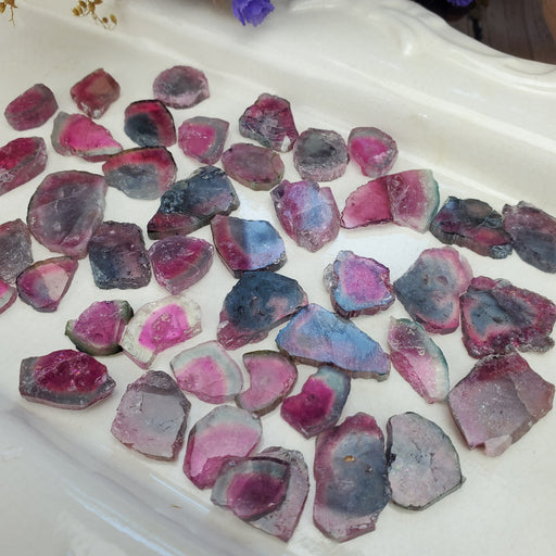 Like the sweetest of candy, these bicolor Tourmaline look so sweet. Their soft blue centers blending to soft pink. Our Bicolor Tourmaline Slices a...