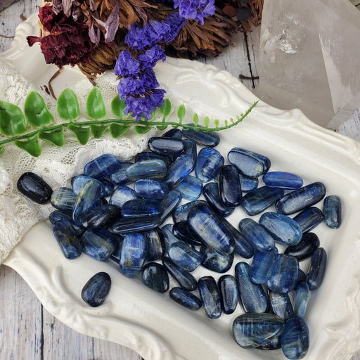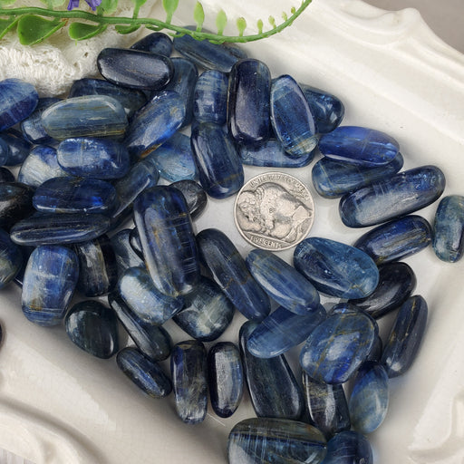 Our Blue Kyanite Tumbles are like little drops of deep blue glaciers; shimmering with col blue and silver light. These Kyanite Tumbles are sold as ...