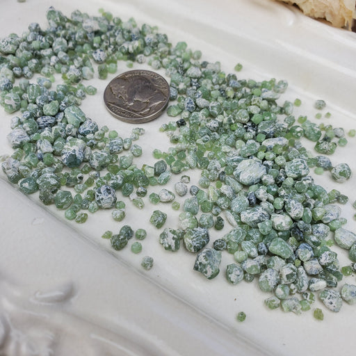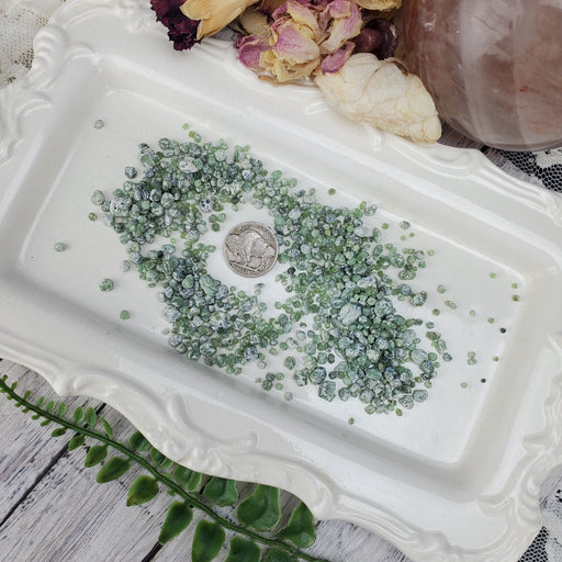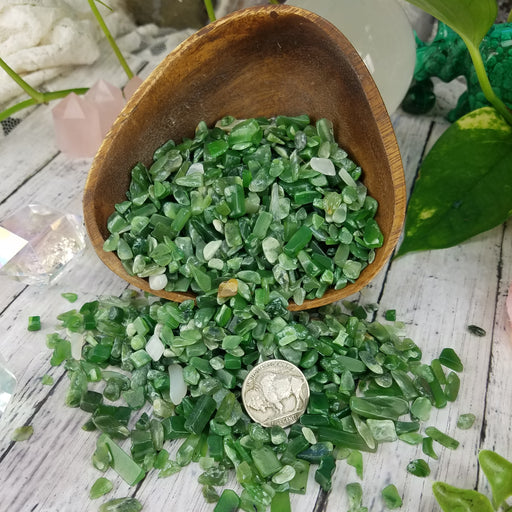 Our Green Jade Chips are all natural Jade. These pieces are a deep and mysterious green. Slightly tumbled but, left a bit raw. These Green Jade Ch...