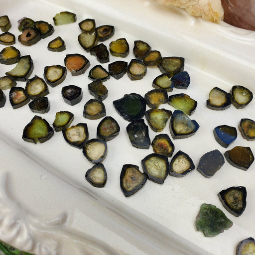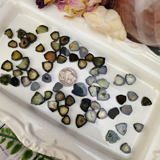Like the deepest forests or healthiest grassland; these Tourmaline are vibrant shades of green. Our Green Tourmaline Slices are sold as randomly s...