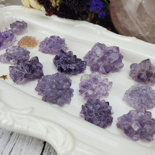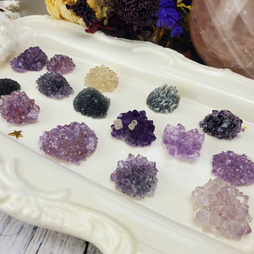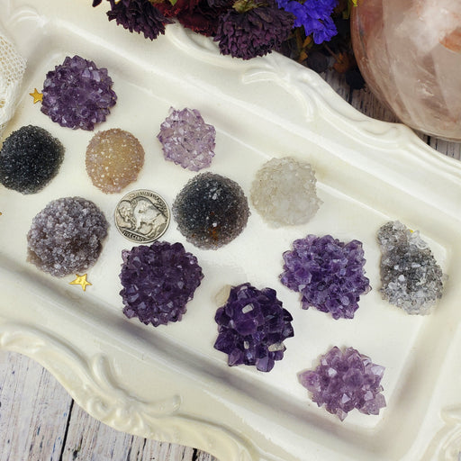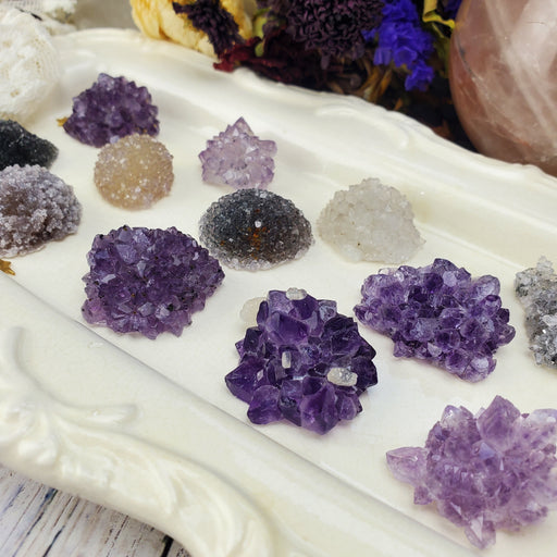 These gorgeous and gemmy Uruguay Stalactite Amethyst Roses are the perfect size for jewelry! These come in a range of shimmery and shiny color, fro...