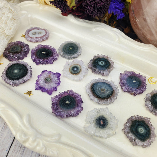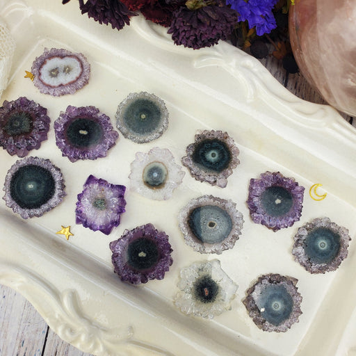 Our Uruguay Amethyst Stalactite Slices are each unique, no two pieces the same. Our Amethyst Stalactite Slices are sold as randomly selected singl...