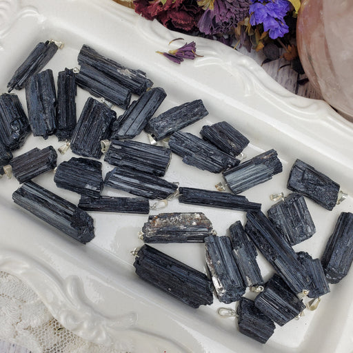 Our Black Tourmaline Pendants are pitch black with a beautiful shine. Their simple design perfect for layering! These Black Tourmaline are on a sta...