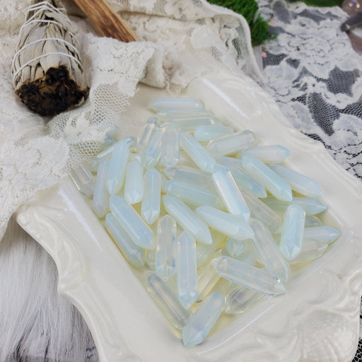 Our Opalite DT Points remind me of clear skies and light summer breezes! They are cut and polished from man made Opalite glass. Our Opalite Double...