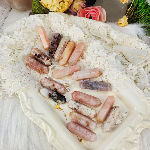 These gorgeous Rose Quartz Perfume Bottles are fierce and feminine. Their soft pastel pink complimented by their sharp double terminated points. O...