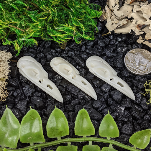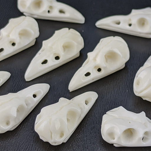 Our Raven Skull Bone Carvings are hand cut and polished from all natural Cow and/or Buffalo bones. These tiny skulls have been drilled for easy jew...