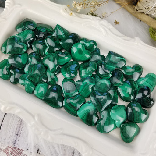 These gorgeous Malachite Hearts are robed in luscious layers of green, with bands ranging from pale green to that of deep forests. Our Malachite He...