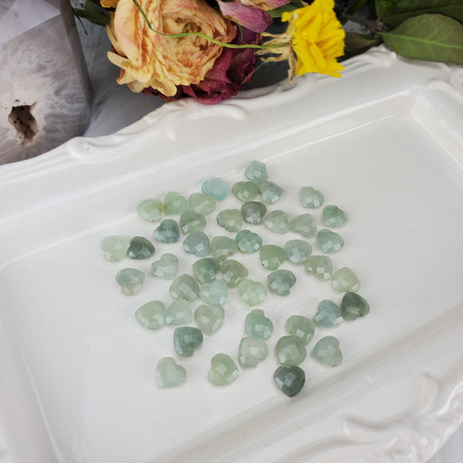 With their soft blue-green hue, these sweet Aquamarine Hearts bring me to cool and calm waters, reminiscent of peaceful oceans. Our Aquamarine Fac...