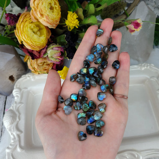 View full detailsLabradorite Faceted Hearts, drilled, 10mm