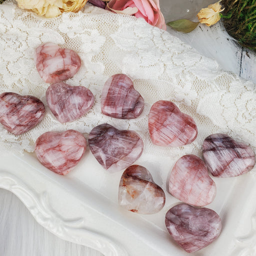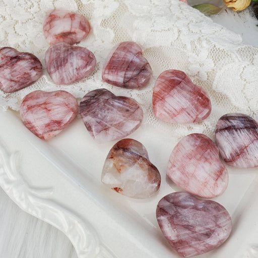 These Quartz Hearts are gorgeous with warm, rich color. Their red tones flow freely throughout the stone. Like ink in water. Our Hematite Quartz H...