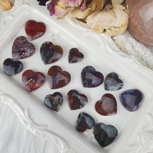Our Moss Agate Hearts are hand cut and polished from exceptional quality, all natural Indonesian Moss Agate. These Indonesian Moss Agate Hearts a...