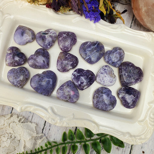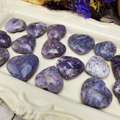 Our soft purple Lepidolite Hearts come from Madagascar. Their purple faces mottled with crystal cream. Our Lepidolite Hearts are sold as randomly ...