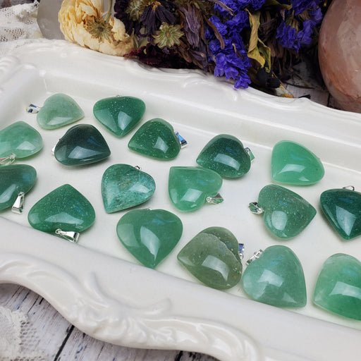 Our Aventurine Hearts are hand cut and polished from all natural Quartz that I believe have been dyed green. Our Aventurine Hearts are sold as ran...