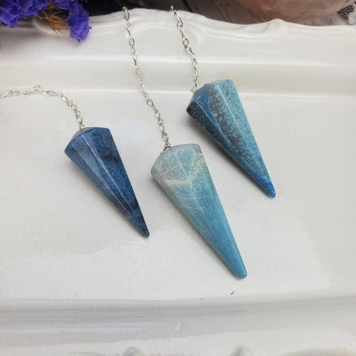 Our Trolleite Pendulums come in the most gorgeous shades of blue! These Pendulums are approximately 1 1/4''- 1 1/2'' tall and 1/2''-1'' wide (at it...